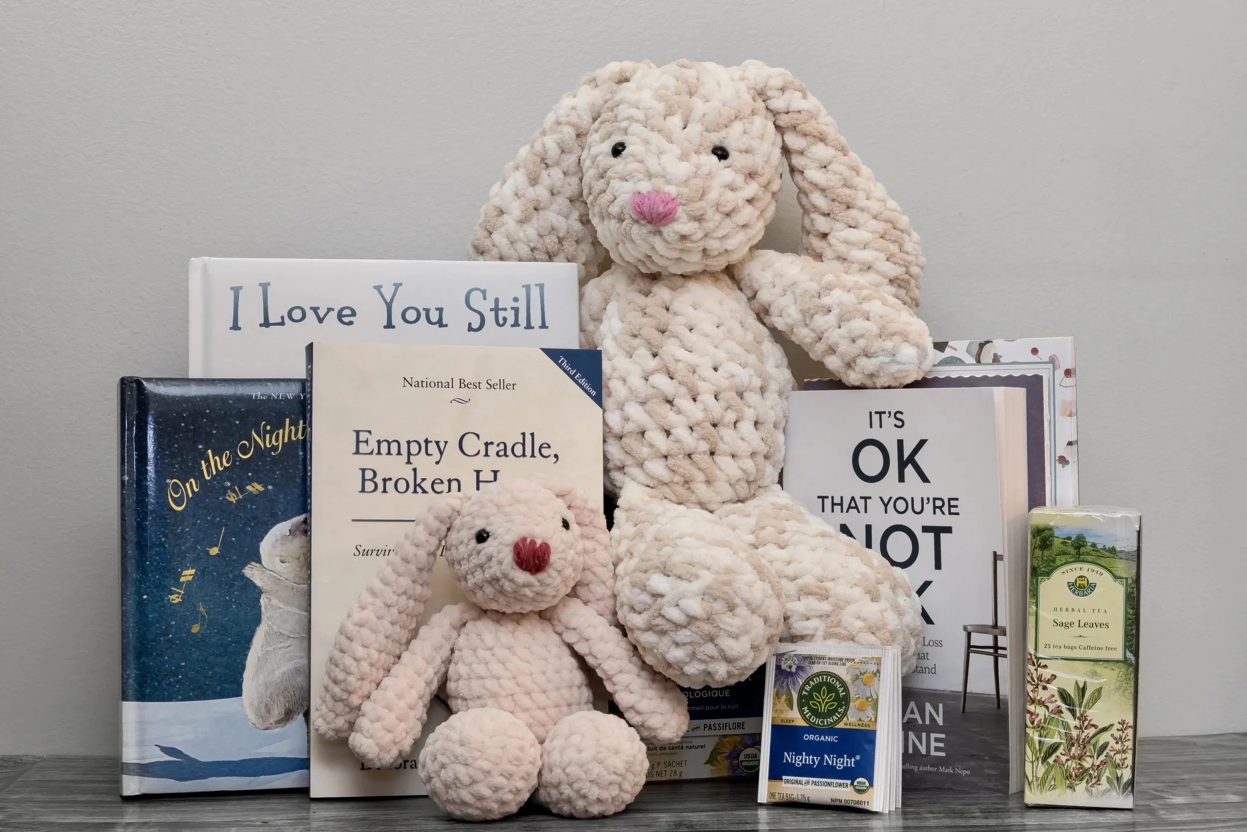 Bridget’s Bunnies Comfort Kits are for anyone affected by the loss of a pregnancy or infant, including birthing parents, non-birthing parents, grandparents, siblings, and support people. Each kit is designed with care to meet the emotional and practical needs of the recipient.